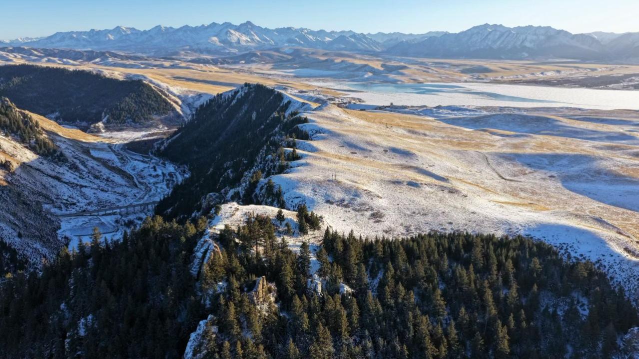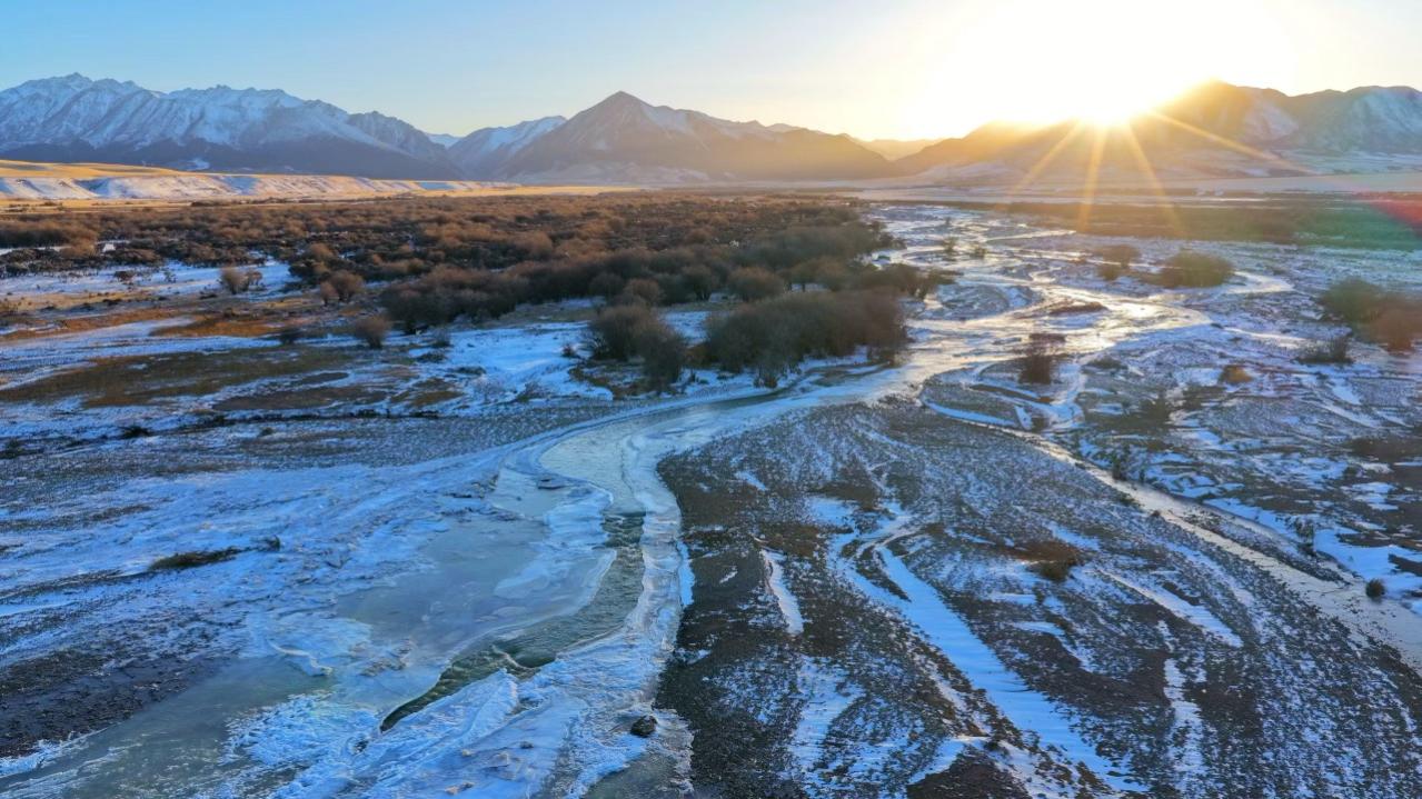 河流湖泊未完全封冻,如镶嵌在雪地中的蓝宝石,泛着清冷光泽。