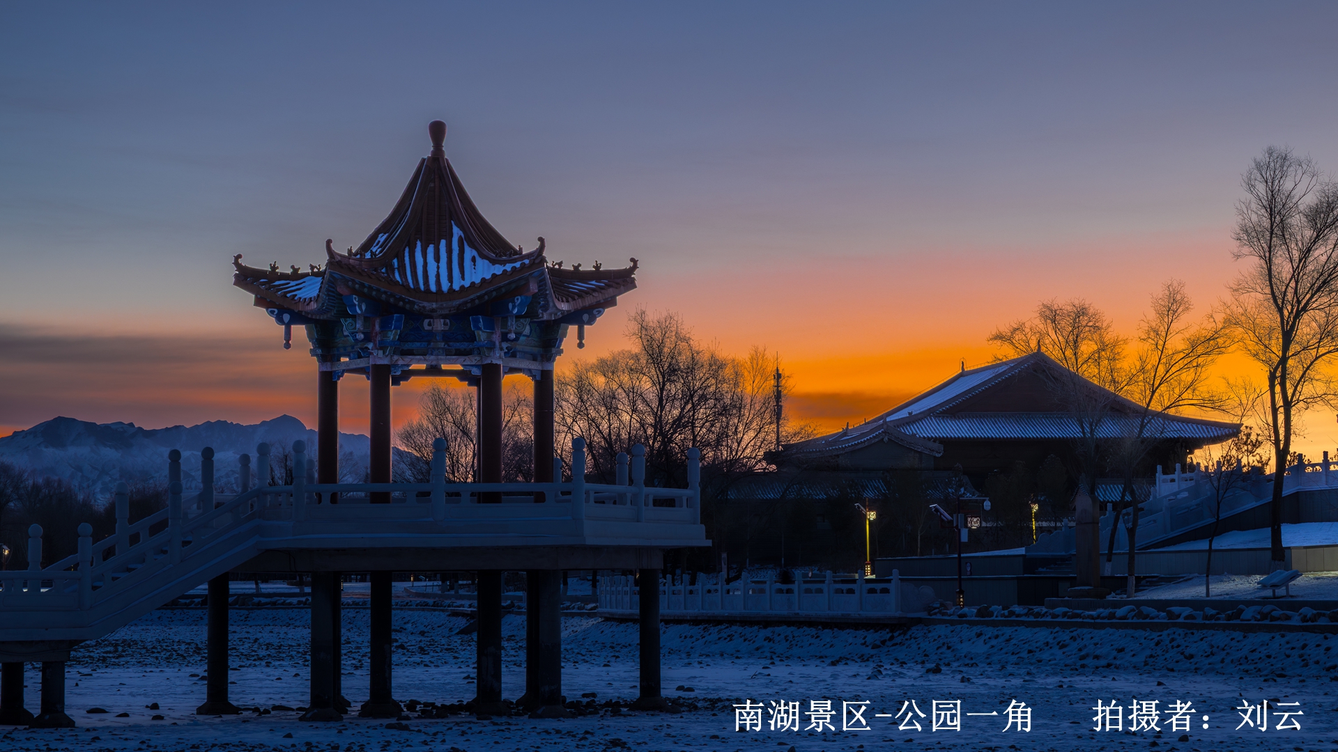 山丹南湖生态文化(植物)园位于山丹县城南,紧邻山丹河,1982年由南湖喇嘛缸泉改扩建而成,2011年评定为国家AAA级旅游景区。公园总占地面积360亩,观赏景点近20处,游乐体育项目10多项,是集生态保护、景观体验、文体休闲、商业潮玩、艺术展示于一体的综合性公园。公园内彩色健身步道贯通全园游览大环线,人工湖、景观水系、山丹花观赏区、观水平台等特色景观让游客尽享亲水、漫步的浪漫体验;文物园、仙堤书院、发塔、昭文堂、山丹八景等人文景观见证了岁月更迭,诉说着山丹独特的文化历程。园内种植了金叶白蜡、造型油松、红豆草、山丹花、飞燕草、抗寒月季等近50种植物,极大丰富了山丹植物资源。公园环境优美、设施完备,为广大市民及游客营造了一个愉悦身心、亲近自然地休闲活动场所。