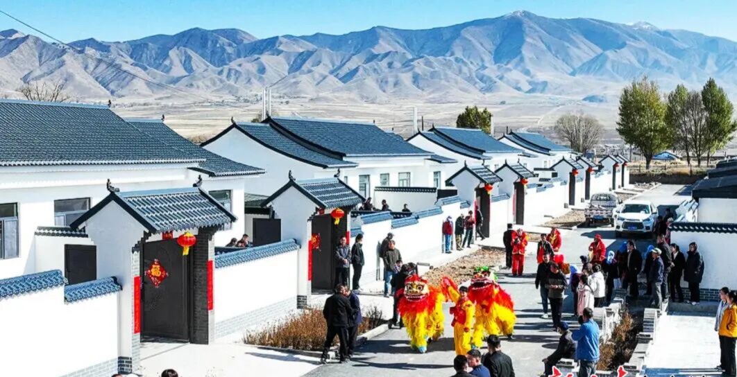 深秋的焉支山下,山丹县大马营镇马营村生态及地质灾害避险搬迁集中安置点锣鼓喧天,喜气洋洋,排排崭新庭院鳞次栉比,硬化道路修到了家门口。文化广场上,村民三五成群,聊着现在的新生活。