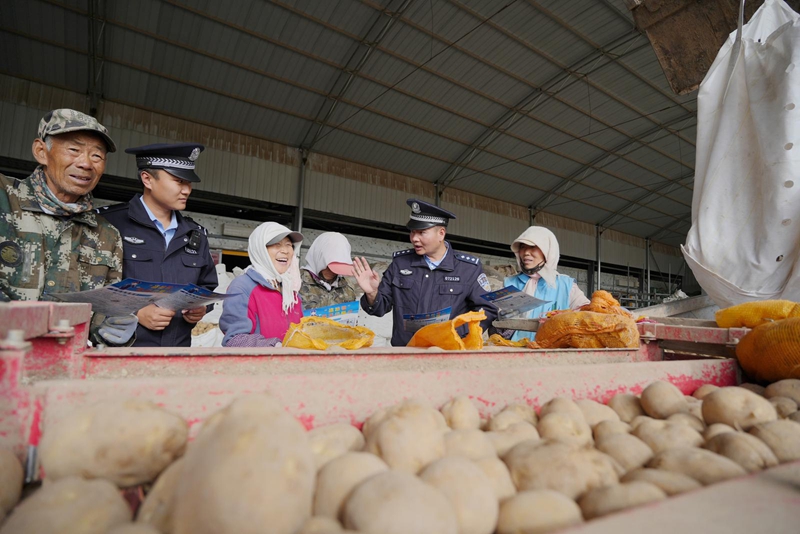 “大家收割完土豆卖钱时,一定要仔细核对对方身份,遇到让先交‘保证金’‘手续费’的,千万别信!”在霍城镇土豆收购点,霍城派出所民警白兴华拿着宣传册,向排队卖土豆的农户讲解反诈知识。秋收季农户手中资金增多,成为电信网络诈骗的重点目标,山丹公安把反诈宣传“搬”到田间地头、农作物收购点、农机市场,用“接地气”的语言,向农户普及“虚假投资”“冒充电商客服”“卖粮诈骗”等常见骗局。