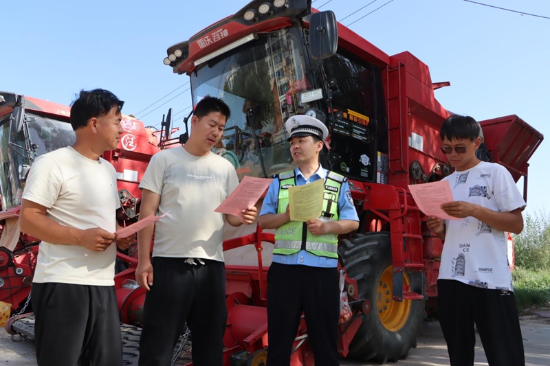 针对农忙时农户交通安全意识薄弱的问题,交通管理大队开展“秋收交通安全专项宣传”。其间,民辅警走进村庄,结合农用车载人、酒驾醉驾、不戴安全头盔等典型事故案例,用“身边事”警示“身边人”。在田间道路、乡镇集市周边设置宣传点,发放《秋收交通安全提示》8000余份。同时,在早晚农忙高峰时段,加大对农村道路的管控力度,严查农用车载人、人货混装、面包车超员等违法行为。“我们还向农机手发放了‘安全驾驶提醒卡’,提醒他们检查车辆、规范操作,避免农机作业事故。”交通管理大队民警王晓露说,目前已查处涉农交通违法行为35起,开展交通安全宣传52场次,受教育群众达3万余人次。