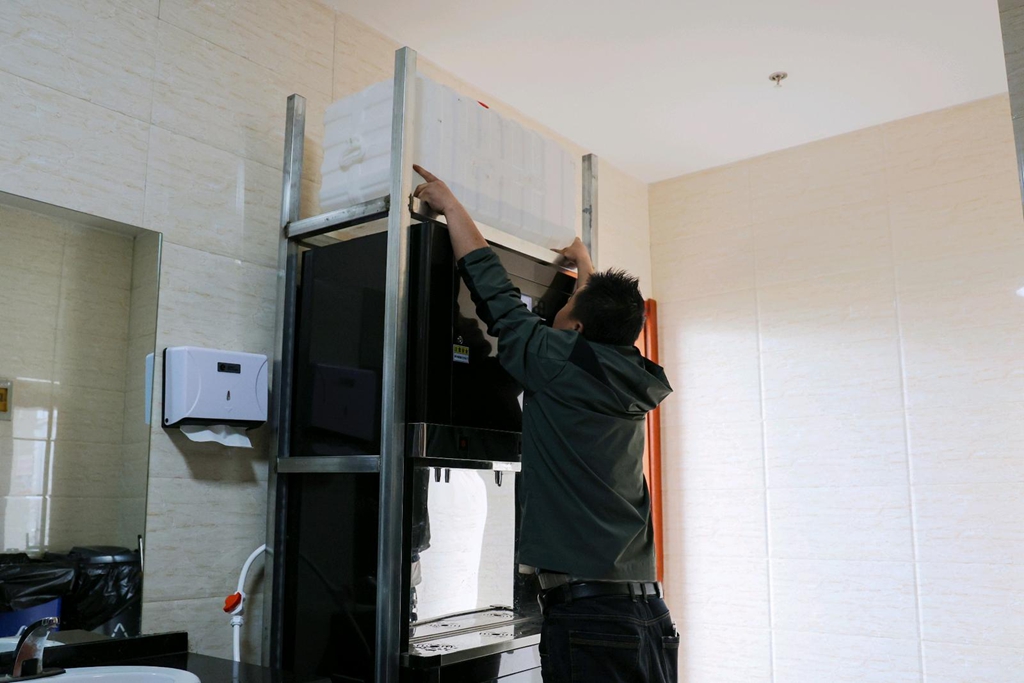 “这套饮水机节水装置藏着大讲究,接一杯净水就会产生三杯尾水,这些洁净尾水会自动汇入顶置储水盒,拧开专用水龙头就能直接使用。”安装现场,工作人员一边调试设备,一边向记者介绍。相较于传统办公节水方式,这套装置最大的优势是“自动循环、按需取用”,彻底改变了以往尾水浪费、手动收集的不便,让每一滴水都能发挥最大价值。