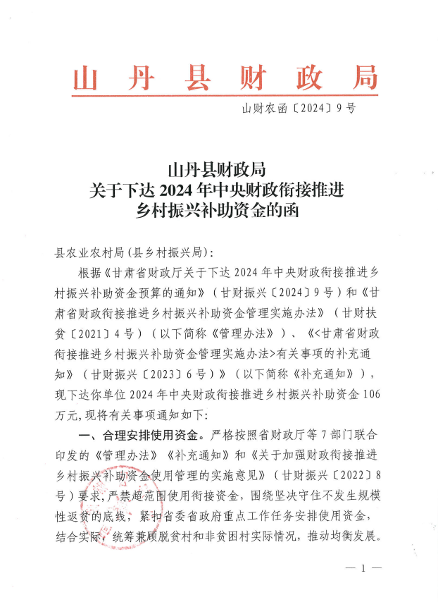 | 索引号 | 6207250003/2024-00112 | 发文字号 | 山财农函(2024)9号 |