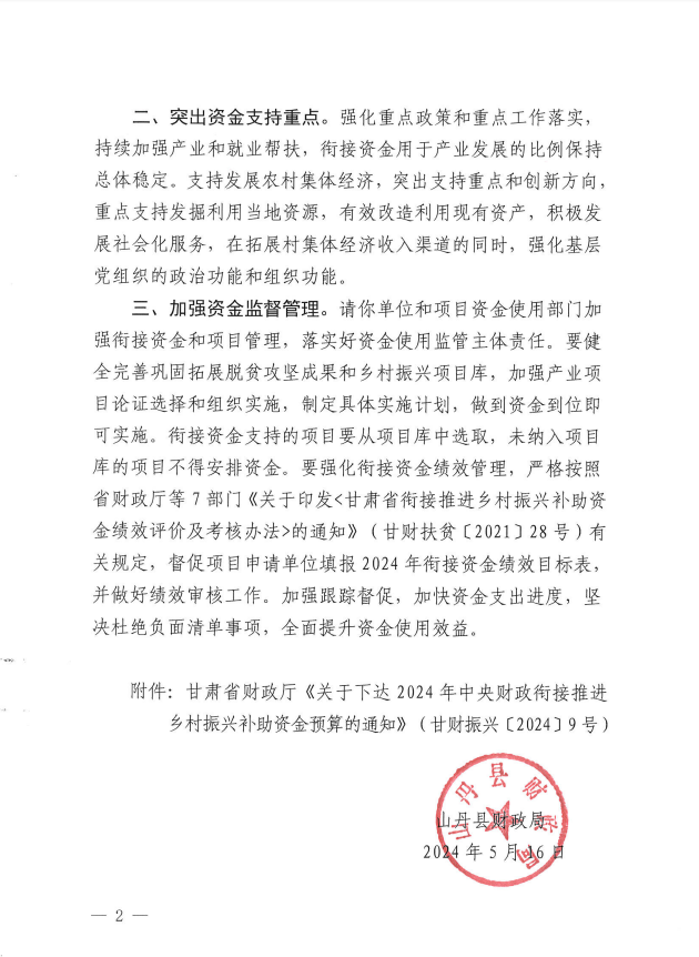 山财农函(2024)9号-下达2024年第二批中央财政衔接推进乡村振兴补助资金的通知