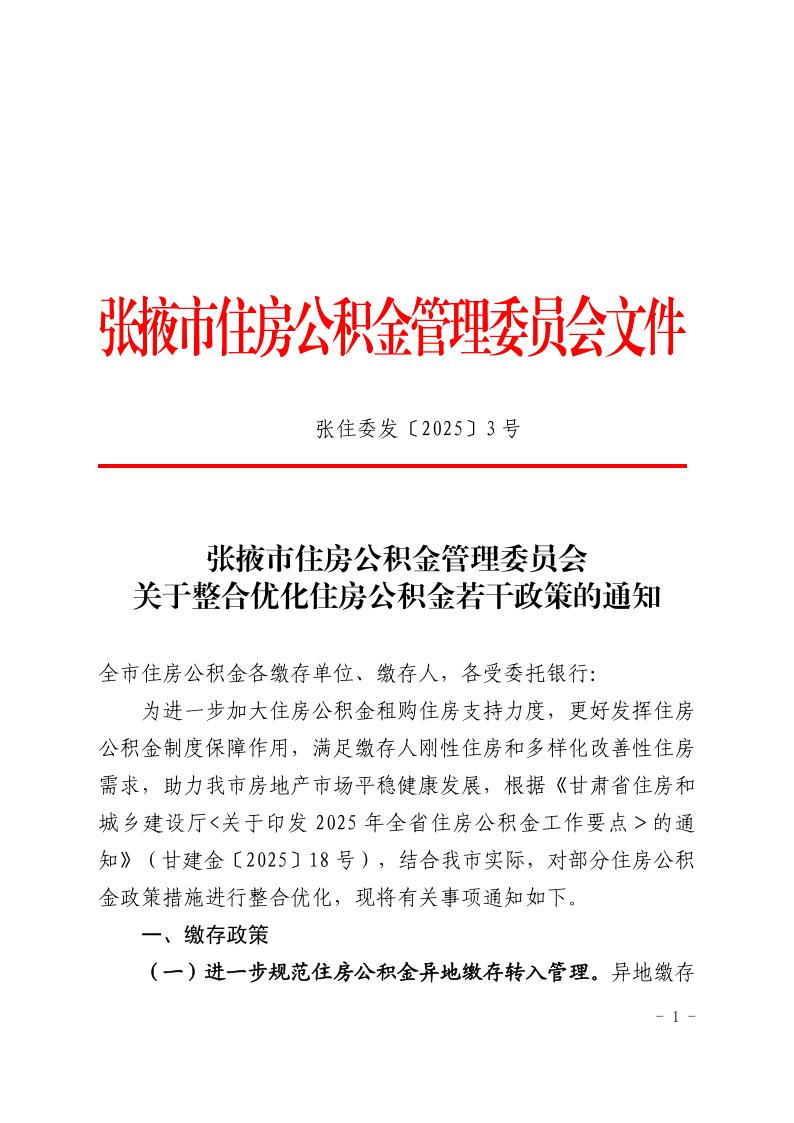 张掖市住房公积金管理委员会《关于整合优化住房公积金若干政策的通知》