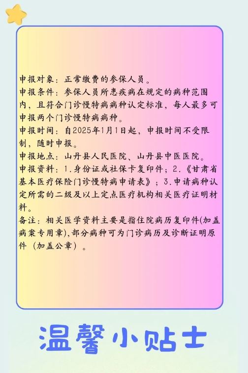 山丹县门诊慢特病保障政策