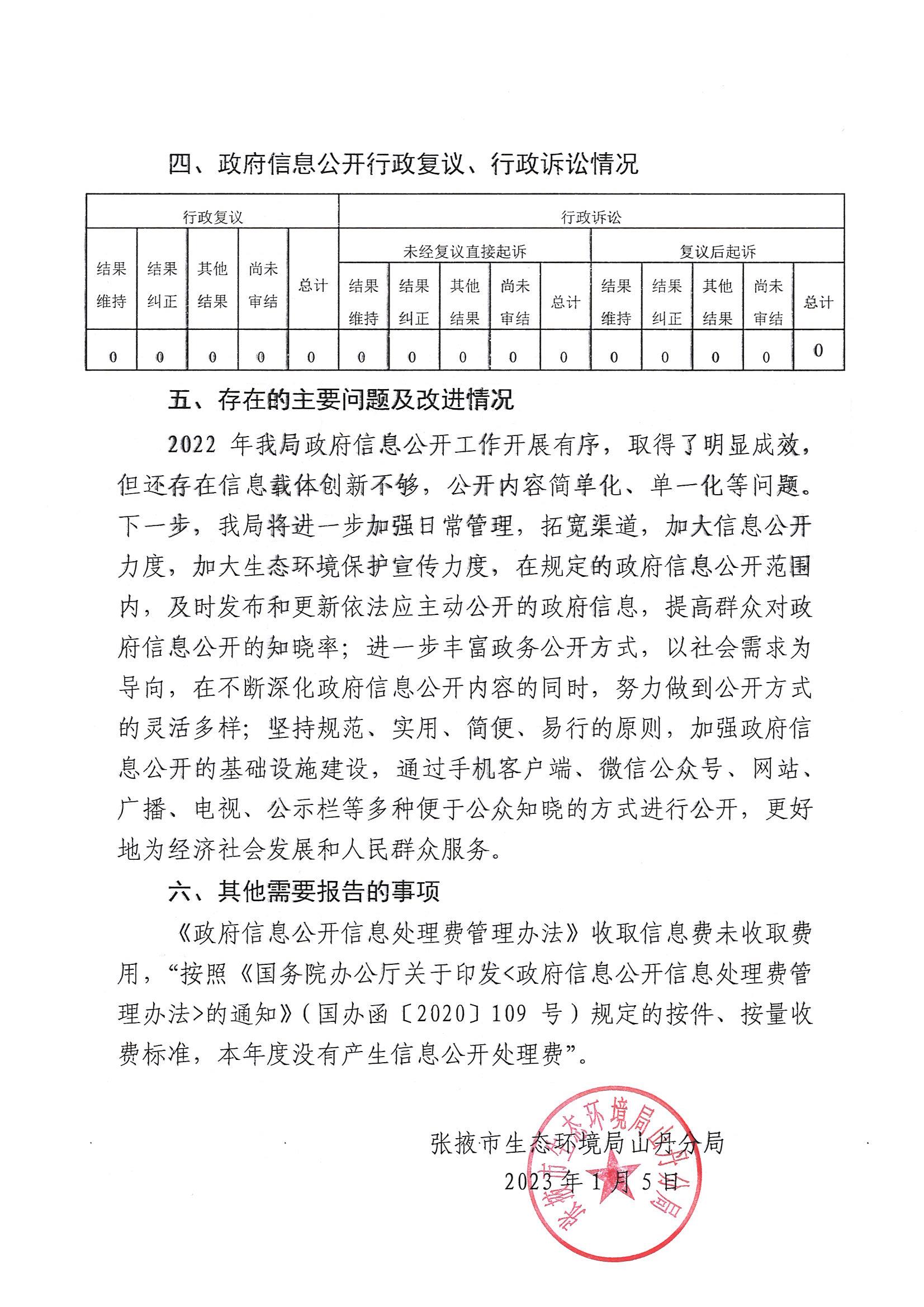 张掖市生态环境局山丹分局2022年政府信息公开工作年度报告