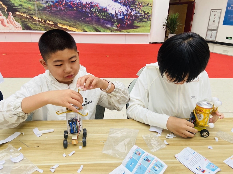 有的孩子专注于线路连接,小心翼翼将电池盒与电机、传感器等部件相连;还有的孩子发挥团队协作精神,互相交流讨论制作过程中遇到的问题,共同寻找解决方案。经过一番努力,一个个简易机器人逐渐在他们手中诞生。按下开关,看到自己亲手制作的机器人缓缓移动,孩子们脸上洋溢着自豪和喜悦的笑容。